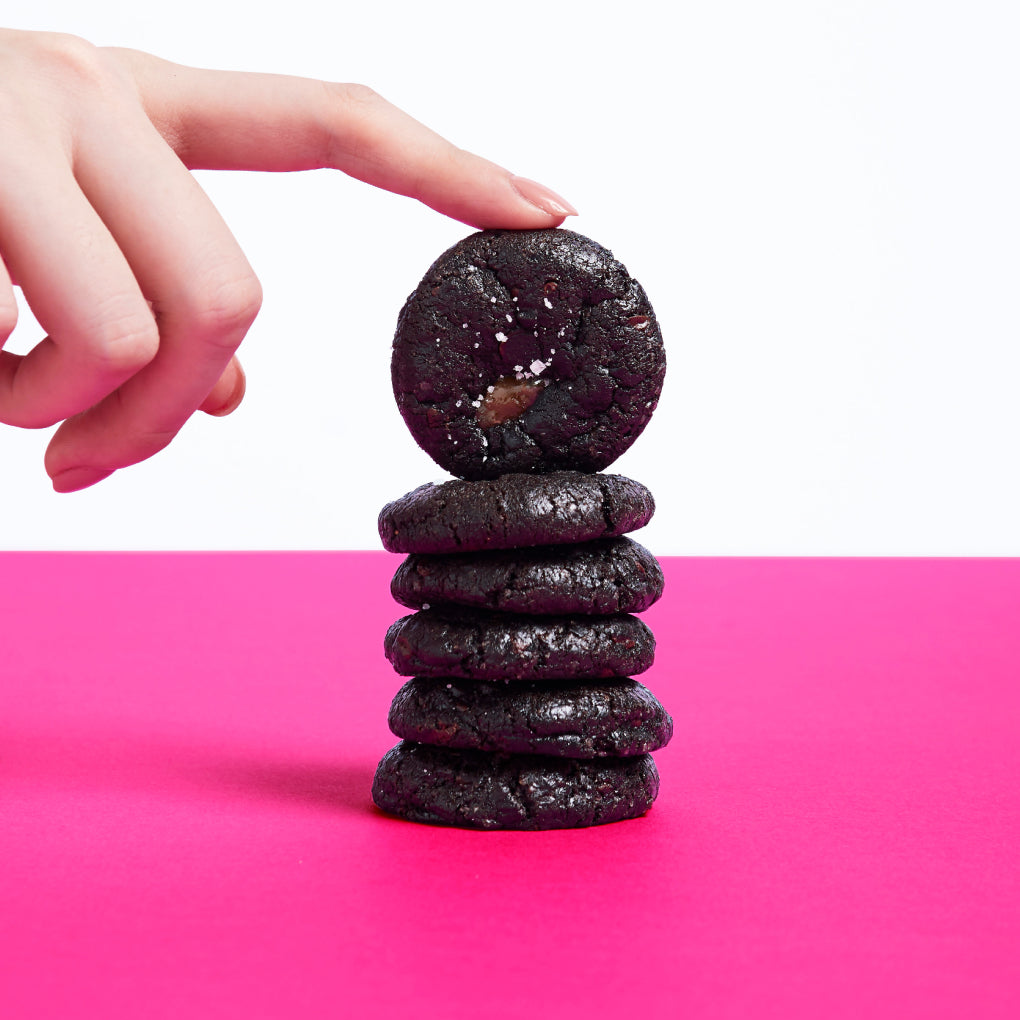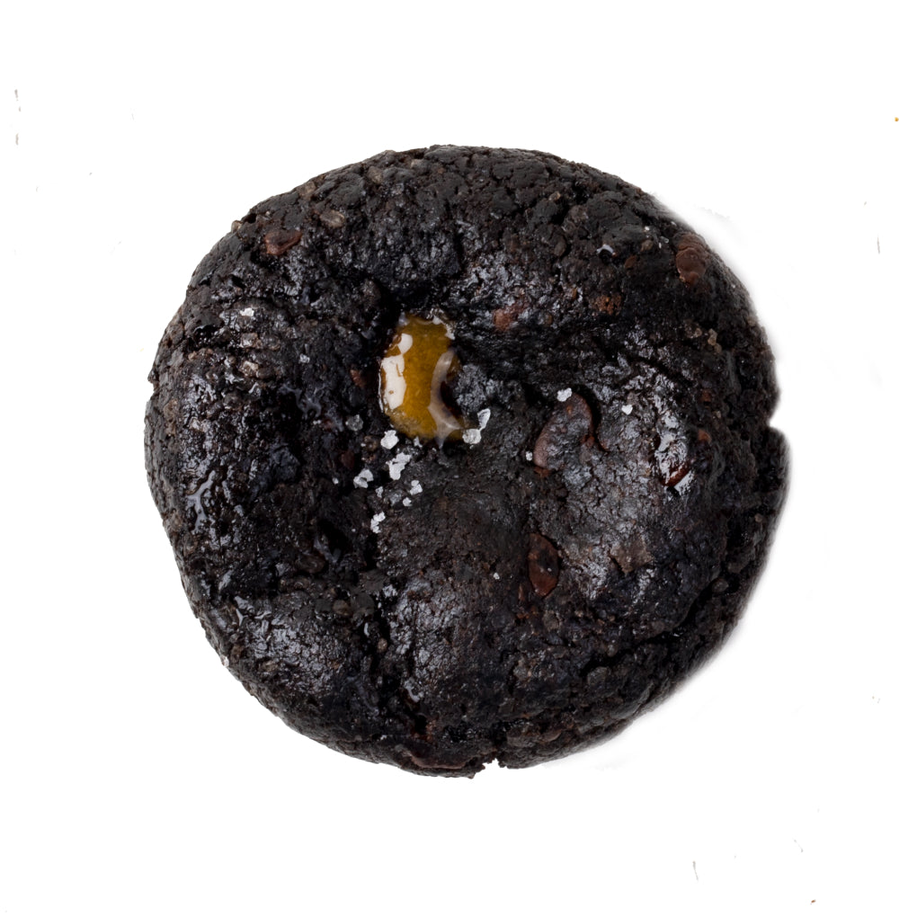 Double chocolate chip cookies with salted caramel.