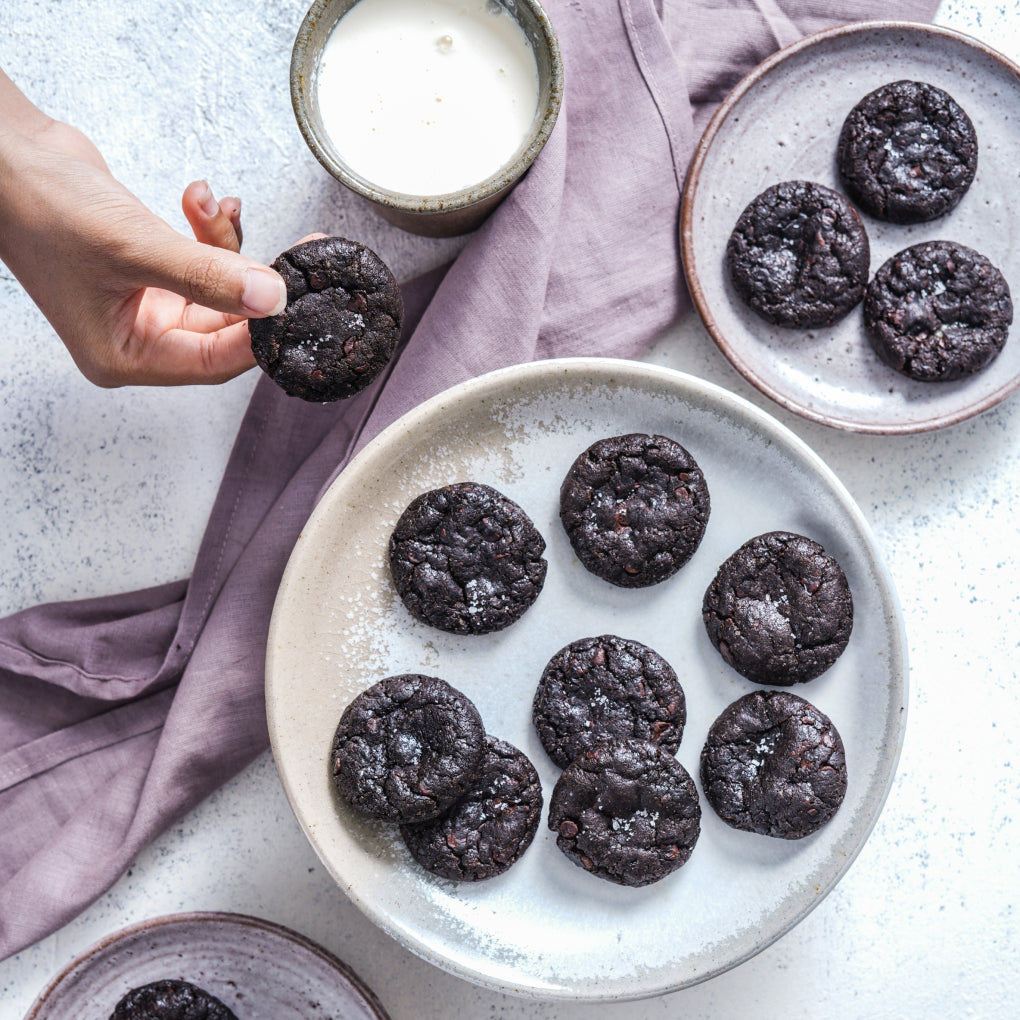 Flour, cocoa powder, pure butter, brown sugar, sugar, whole eggs, pure vanilla extract, chocolate chips, sea salt, baking soda.